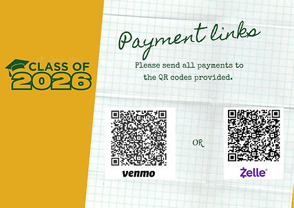 We kindly ask that all payments for all events including Dinner Dance be sent via Venmo or Zelle Classof2026grads@gmail.com. ​